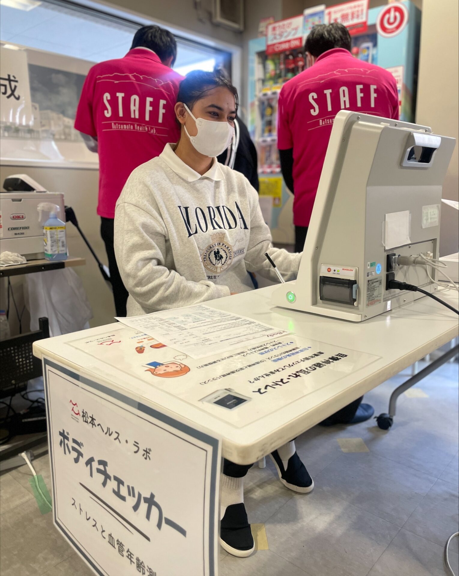 学生・教職員ともに興味がある検査(体組成・AGEs・Body Checker・ベジチェックなど)を自由に測定!